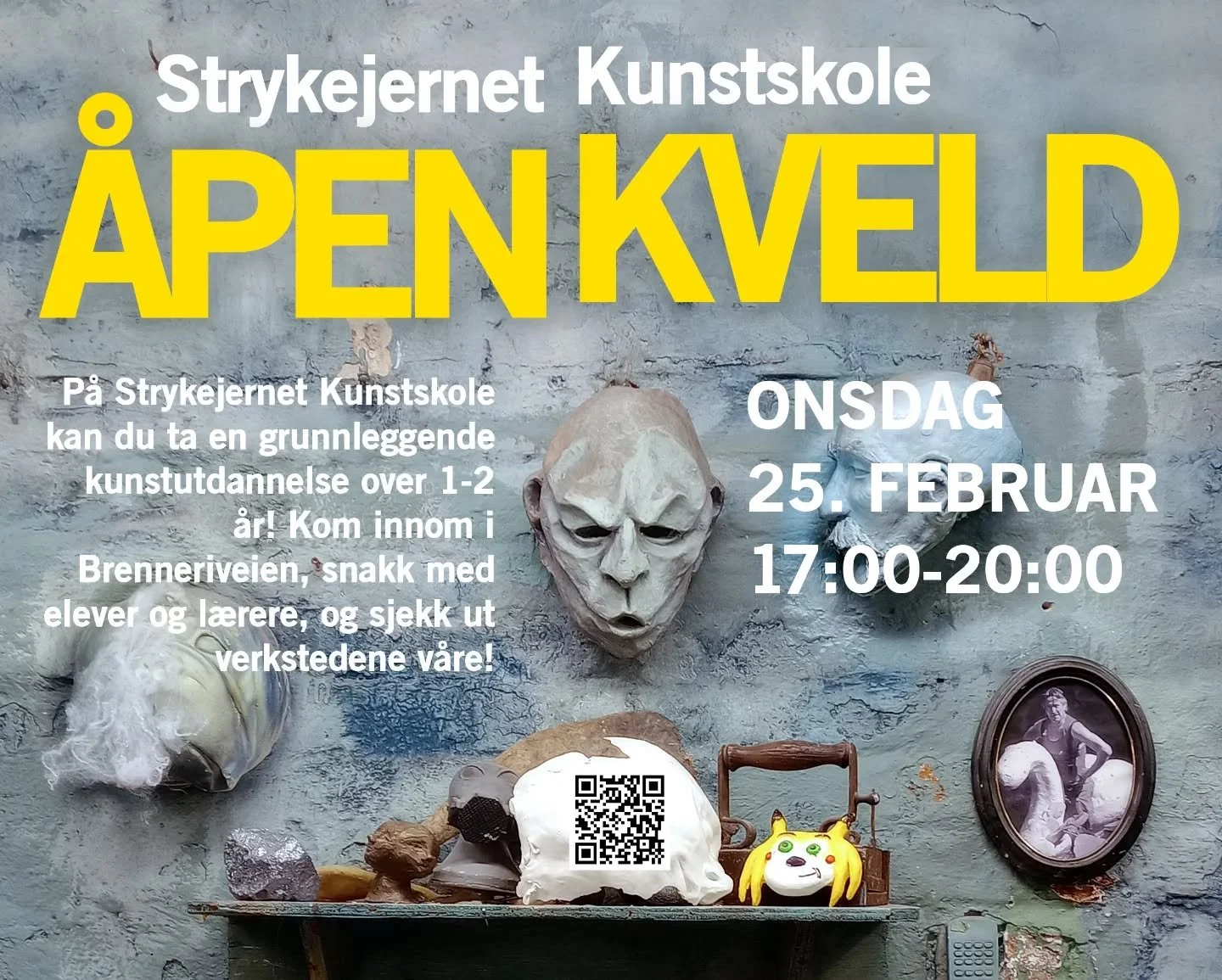 Begrepet “tredimensjonal kunst” rommer mye innen tradisjonelle og nyere kunstformer. På Strykejernet får elevene kurs i skulptur, installasjon, lyd, video og performance og tilgang på godt utstyrte verksteder.